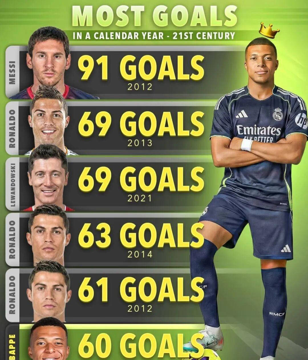 姆巴佩若在未来一个月再进10球,将超越C罗,仅次于梅西登顶经典进球榜